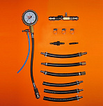 Тестер топливной системы впрыска. Позволяет диагностировать абсолютно любые топливные системы впрыска автомобилей (Европа, Россия, Азия, Америка и т.д.) и находить неисправный элемент методом измерения давления. Достоинством является высокоточный манометр, диаметром 63 мм, с ценой деления 0,1 BAR. В комплекте порядка 80 адаптеров.