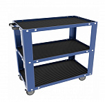 Для размещения и хранения подручного инструмента. Оснащена поворотными прорезиненными колесами размером 4" х 1" (2 колеса оборудованы тормозом). 2 стальные боковые ручки. 3 полки (грузоподъемность каждой полки 40 кг).