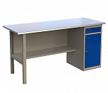 Верстак однотумбовый поставляется в разобранном виде. Нагрузка на столешницу до 600 кг. Стандартный цвет: корпус - серый глянец RAL 7030, ящики и двери тумб - синий RAL 5017. Размеры:855x1400x700 мм. Вес: 86 кг.