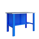 Верстак комплектуется полкой-стенкой, расположенной под столешницей для удобного размещения габаритного инструмента и оснастки. Опорные элементы выполнены сварными из холоднокатаной стали. Все металлические элементы покрыты полиэфирной порошковой краской. Столешница из фанеры толщиной 24 мм, которая покрыта листом оцинкованной стали толщиной 1,2 мм. Глубина столешниц 696 мм. Максимальная масса груза на столешнице - 350 кг.