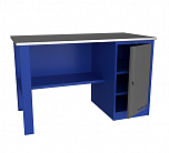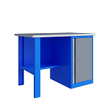Верстак однотумбовый поставляется в разобранном виде. Нагрузка на столешницу до 600 кг. Стандартный цвет: корпус - серый глянец RAL 7030, ящики и двери тумб - синий RAL 5017. Размеры:855x1400x700 мм. Вес: 76 кг.