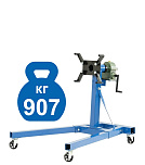 Оснащен редуктором для быстрого вращения одной рукой. П-образная рама. 4 поворотных колеса обеспечивают маневренность и устойчивость к перевороту. С 4-мя регулируемыми кронштейнами для удобства вывешивания и обслуживания ДВС легковых и легких грузовиков. Можно установить кантователь вплотную к моторному отсеку автомобиля. г/п: 907 кг.
