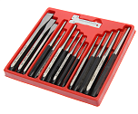 Набор выколоток и зубил с кернером в прочном презентабельном боксе 14 предметов. В комплекте: выколотки: 1.6, 2.3, 3.2, 4.0, 4.8, 5.5, 6.4, 8.0 мм. - 8 шт.; зубила: 10x140 мм., 12x150 мм., 16x170 мм., 19x200 мм., 22x200 мм. - 5 шт. и кернер автоматический.