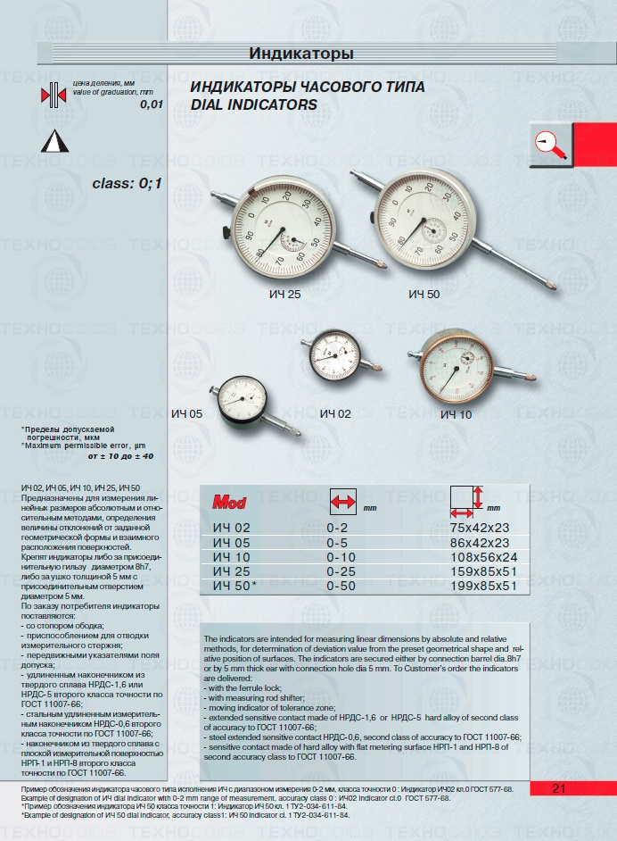 Крепят индикаторы либо за присоединительную гильзу диаметром 8h7, либо за ушко толщиной 5 мм с присоединительным отверстием диаметром 5 мм.