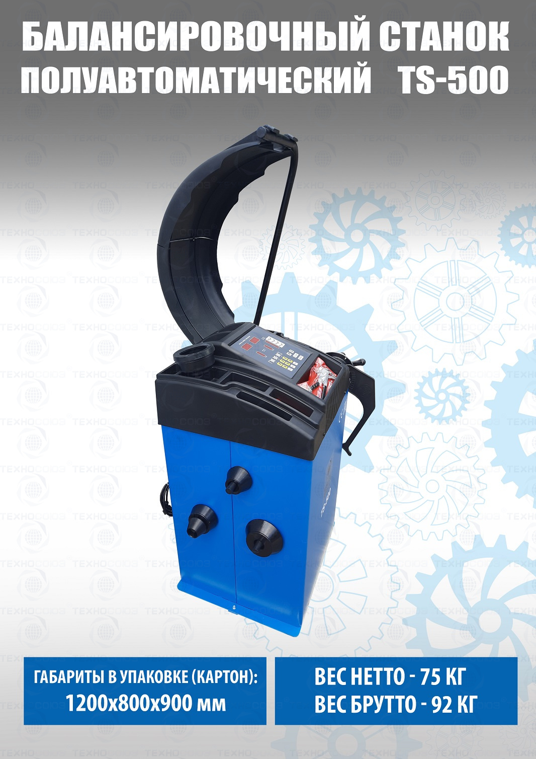 Полуавтоматический балансировочный стенд TS-500 для колес легковых автомобилей, мотоциклов и легких грузовиков с диаметром диска с резиной до 760 мм. Размеры диска: ширина 3–9” (76-228 мм) , диаметр диска" -  10–21” (254-533 мм). Вал-36 мм. Максимальный вес колеса с диском – 65 кг. C кожухом. Точность ±1гр. Напряжение 220В. . В комплекте: кожух с автозапуском + клещи + кронциркуль + быстрозажимная гайка + набор конусов