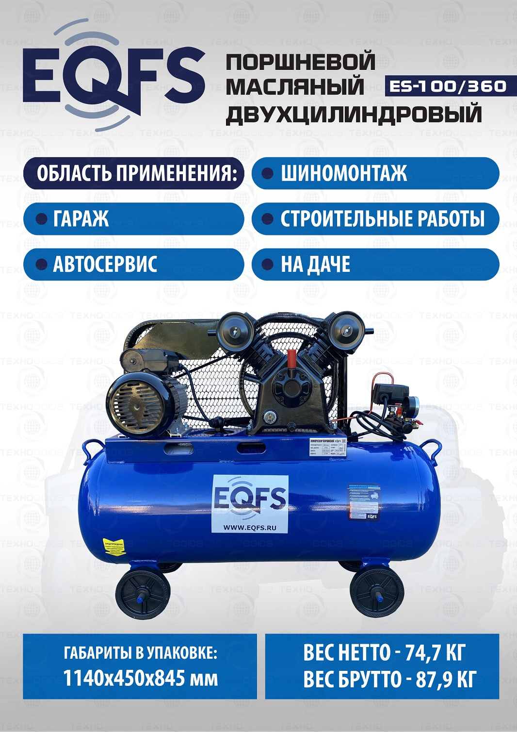 + компрессор поршневой трехцилиндровый производительностью 360 л/мин